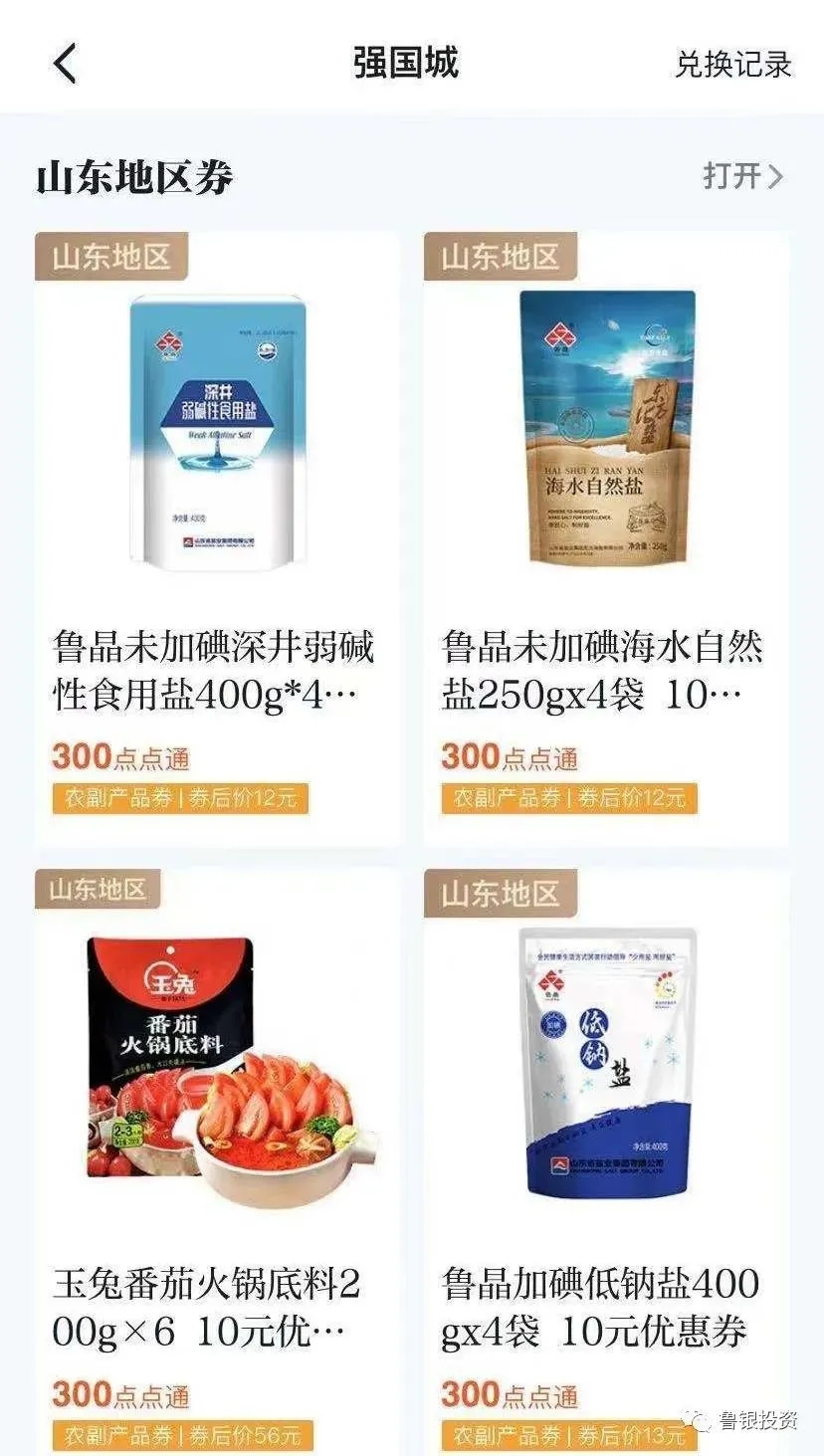 为扎实推进“我为群众办实事”实践活动,更好服务“学习强国”学习平台的广大用户,山东江南所属鲁盐集团党委在省工信厅的大力支持下,“鲁晶”食盐正式登陆“学习强国”平台,上架“强国城”免费兑换和专项优惠券区。其中免费兑换区的弱碱性食用盐产品在上线后短短的几个小时之内被兑换完毕。截止目前,专项优惠券区活动正在进行中,山东省内的学员可继续使用“点点通”兑换优惠券购买。