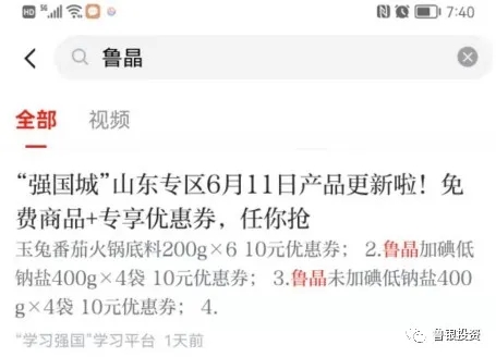 山东江南“我为群众办实事”系列活动之一“鲁晶”食盐登陆“学习强国”