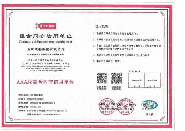 近年来,山东建勘将诚信作为企业经营发展的软实力,高度重视企业信用体系建设,加强合同履约情况审查,强化风险防控机制,积极履行社会责任,全力提高企业诚信管理水平,先后荣获全国工程勘察设计行业诚信单位、全国AAA级重合同守信用单位、AAA级质量服务诚信单位、资信等级AAA级、AAA级诚信经营示范单位、AAA级诚信供应商等荣誉称号。此次获得全市勘察设计行业单位信用满分评价,是对山东建勘企业诚信建设与信用管理的肯定,充分体现了山东建勘在全市勘察设计行业的品牌优势。