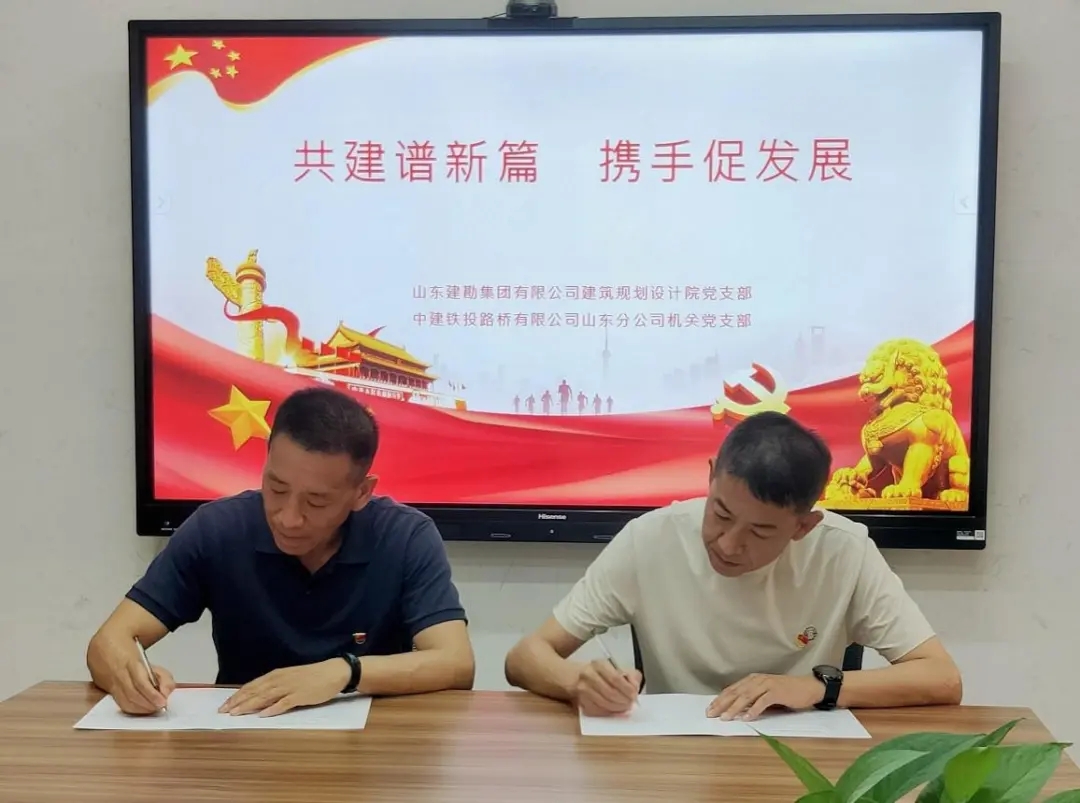6月17日下午,山东江南所属山东建勘建筑规划设计院党支部联合中建铁投路桥有限公司山东分公司机关党支部共同开展“共建谱新篇 携手促发展”主题党日活动暨支部结对共建签约仪式。