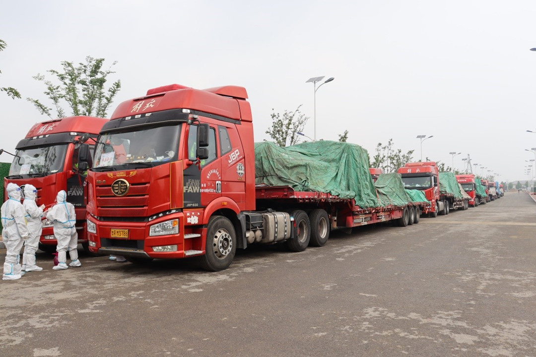 在设备安装的关键节点,受疫情影响,碳化线部分关键设备滞留上海,无法运出,对碳化A线调试运行产生重大影响。在此紧要关头,大成科技主动对接,多方协调,对设备滞留情况进行全面细致的研究,协同配合政府有关部门,积极与上海有关方面沟通联系,经过反复交流和确认,在疫情防控政策允许的范围内,制定运输方案,打通了上海至山东的物流堵点。大成科技采购部门主动请缨,逆行赴沪,由一名班子成员带队前往,全程协调运输对接事宜,全流程组织完成对接联系、疫情防控、人员组织、货物装运、报关审批、车队管理等关键环节。经过5天的日夜兼程,5月10日上午,14辆MAE碳化冷包设备运输车辆顺利从上海抵达泰安的碳纤维项目现场,为项目早日投产争取了宝贵时间。