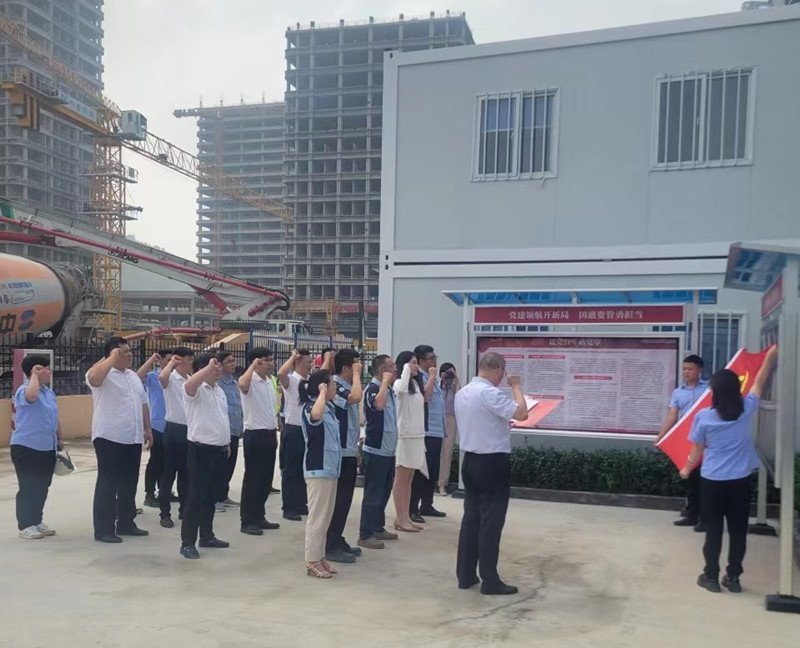 活动中,江南资管党委主要负责同志带领惠威置业和总包施工单位党员代表、安全管理人员集体学习了习近平总书记关于安全生产的重要论述,全面总结和部署安全生产工作,表彰了项目建设中涌现出的“安全之星”优秀集体和个人,为新成立的“党员安全先锋队”现场授队旗,并重温了入党誓词。