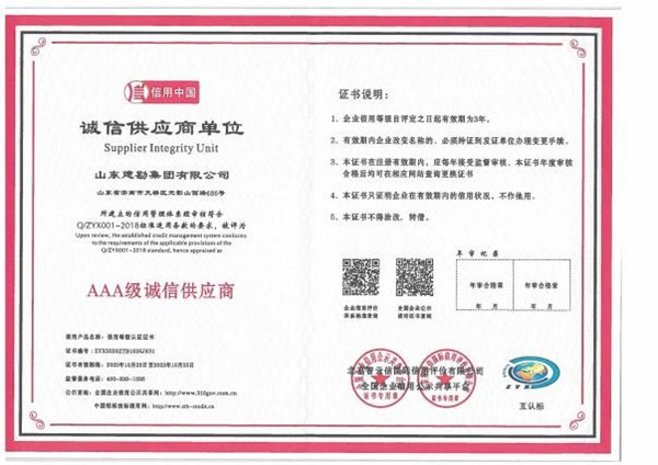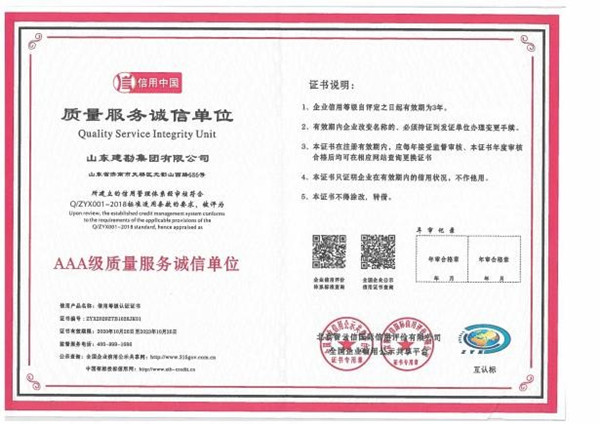 近年来,山东建勘将诚信作为企业经营发展的软实力,高度重视企业信用体系建设,加强合同履约情况审查,强化风险防控机制,积极履行社会责任,全力提高企业诚信管理水平,先后荣获全国工程勘察设计行业诚信单位、全国AAA级重合同守信用单位、AAA级质量服务诚信单位、资信等级AAA级、AAA级诚信经营示范单位、AAA级诚信供应商等荣誉称号。此次获得全市勘察设计行业单位信用满分评价,是对山东建勘企业诚信建设与信用管理的肯定,充分体现了山东建勘在全市勘察设计行业的品牌优势。