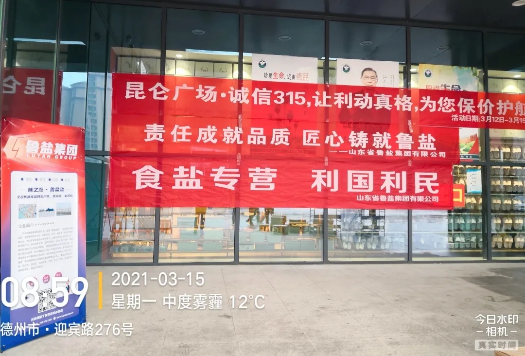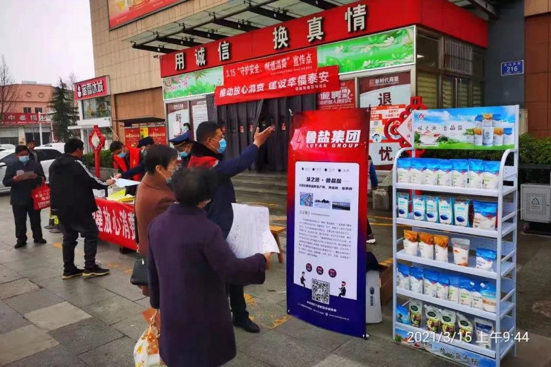 3月15日,鲁银投资所属鲁盐集团围绕“匠心铸就鲁盐,365天每时每刻都是3·15”宣传主旨,联合市场监管部门,在省内外部分城市的广场、商超、居民社区开展了“匠心鲁盐、品质315”活动,向消费者讲解真假食盐辨别常识,普及科学用盐知识,并通过发放宣传手册、扫码送食盐等方式,推广优质好盐,传播鲁晶品牌。
