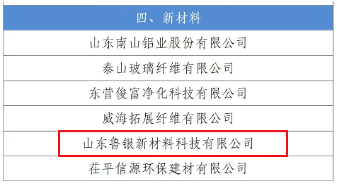 鲁银新材上榜2020年山东省“十强”产业高质量发展奖励企业名单