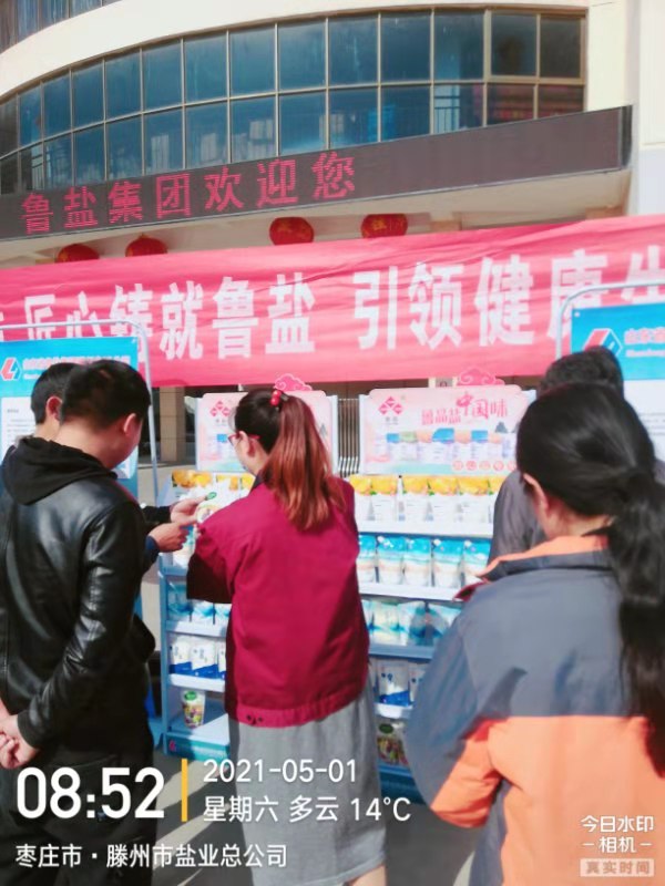鲁盐销售公司节日期间举行全员营销活动。全体销售人员主动下沉一线,根据各地情况不同,分别采取驻店销售、堆头促销、社区宣传等不同方式,齐心协力开展盐品宣传和促销活动。