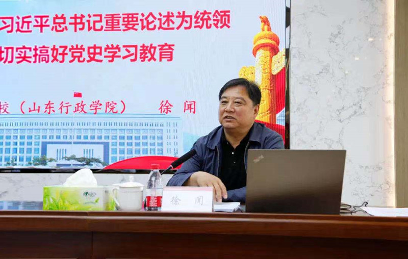 徐闻同志以《坚持以习近平总书记重要论述为统领,切实搞好党史学习教育》为题,把学习党的百年历史与山东红色革命历史相结合,围绕如何树立正确的党史观、如何在学习党史中感悟思想伟力、践行初心使命等方面系统阐释了当前进一步加强党史学习的重要意义。整个报告深入浅出,旁征博引,既是一次深入细致的专题报告和解读,也是一次深化学习、深有启发的“理论大餐”。