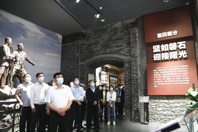 在大峰山党性教育基地,全体党员先后参观了革命根据地纪念馆、革命根据地老馆等地,通过一幅幅珍贵图片、一件件历史遗物、一段段英勇事迹,详细了解了大峰山革命根据地从无到有,从弱到强的发展历程和革命历史。通过纪念馆内“泉城播火、光照长清,国难当头、浴血奋战,同仇敌忾、共筑长城,坚如磐石、迎接曙光,奋起自卫、欢庆解放,遍地英雄,不朽丰碑”六部分的参观学习,大家切实体会到了革命先烈们的坚定理想信念以及对党无比忠诚、坚韧不拔的革命精神。随后,广大党员在初心广场重温入党誓词,以铮铮誓言牢记初心使命,坚定理想信念。