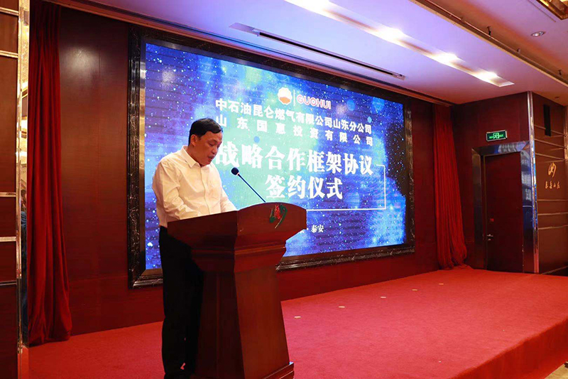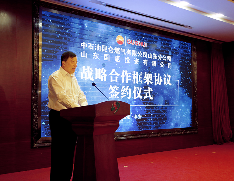 尹鹏董事长对泰安市委市政府一直以来的关心、支持和帮助表示衷心感谢,也对中国石油天然气销售山东分公司在合作洽谈中表现的诚意和给予的信任表示感谢。他简要介绍了山东江南的基本情况,重点介绍利用泰安优势盐穴资源建设储气储能项目的概况和进展。他表示,项目建成后将弥补山东省内储气能力不足的短板,带来良好的社会效益和经济效益。本次战略合作协议的签署,一定会对双方的全面合作,产生积极而深远的影响。下一步将完善工作机制,共同构建全面战略合作关系和长效合作机制,推动产业转型升级,实现高质量跨越发展。