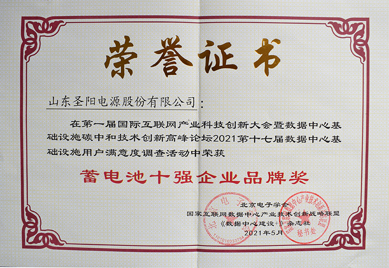 5月14日,山东江南所属圣阳股份在2021第十七届数据中心基础设施用户满意度调查活动中荣获“蓄电池十强企业品牌奖”。本次评选,在市场数据、调研资料、用户满意度反馈、专家推荐以及媒体信息等多维度的充分调研基础上,结合品牌市场占有率、厂家生产规模、产品技术创新亮点和绿色环保等指标,对全国蓄电池厂商进行的权威测评。获得此奖项,是业界对圣阳股份在产品质量、市场规模、技术研发、经营管理、绿色环保等方面的成绩的肯定。